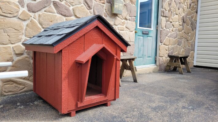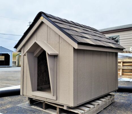 Rear View • 4 x 4 Dog House • 4 x 4 Porch • Model DH48 • Pictured: mushroom stain • Pictured: Sunset cedar shingles