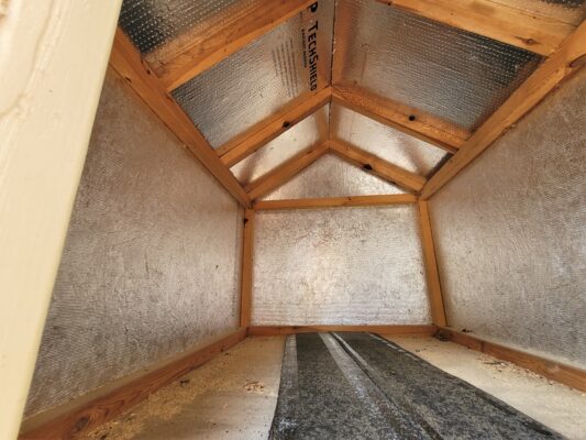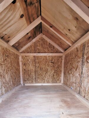 8 x 12 Dog Kennel • Model DH812 •4 x 8 house / 8 x 8 run area Pictured: • Red paint • Shadow black trim • Shadow black shingles